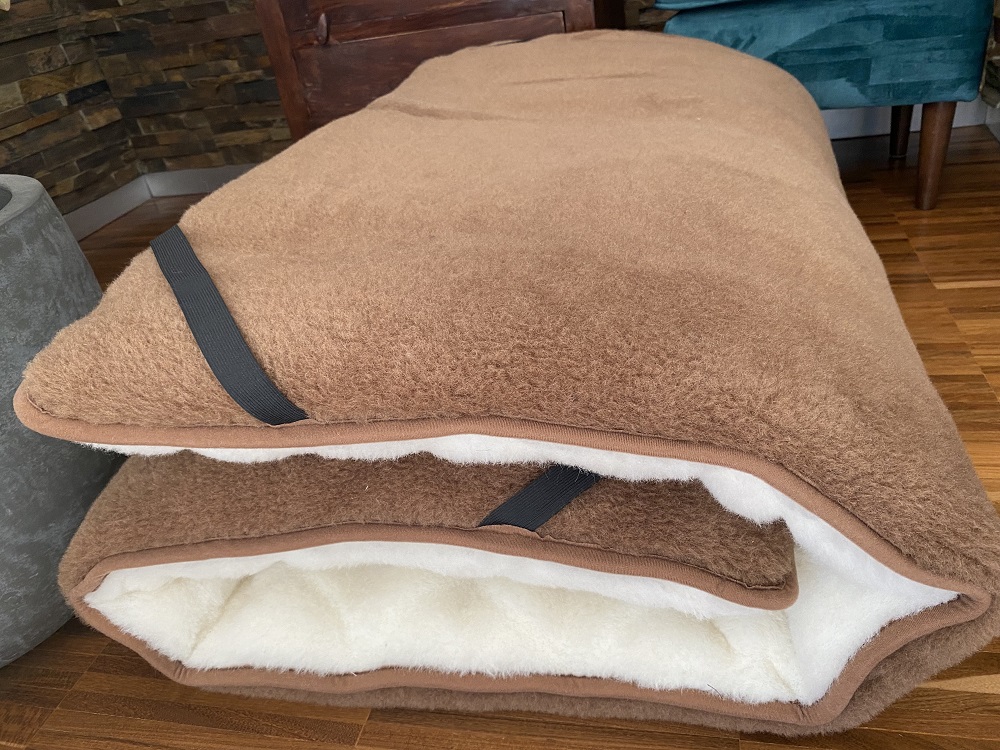 Materac z wełny Camel z wypełnieniem poliestrowym 5 cm grubości dwustronnie wełniany Camel + Kaszmir wypełniony 5 warstwami włókniny poliestrowej dzięki czemu nadaje sie zarówno na kanapy jak i różnego rodzaju starszego typu łóżka gdyż odpowiednia grubość włókniny poliestrowej przyczynia się do równomiernego rozłożenia wszelkich nierówności na kanapach dodatkowo materac z wełny kaszmir na rogach ma 4 gumki służące do zaczepu na łóżko kanape.Wełna Wielbłądzia jest niezwykle delikatna i miękka a do tego niebywale stylowa i elegancka w komponuje się w każde pomieszczenie w sypialni.