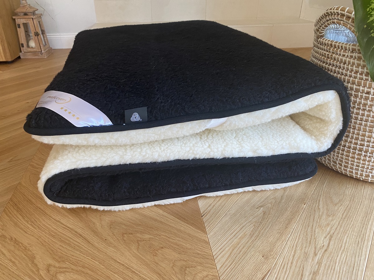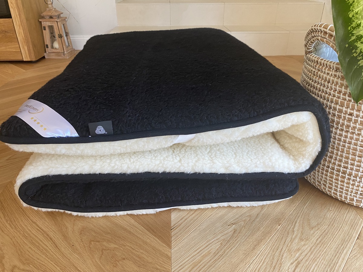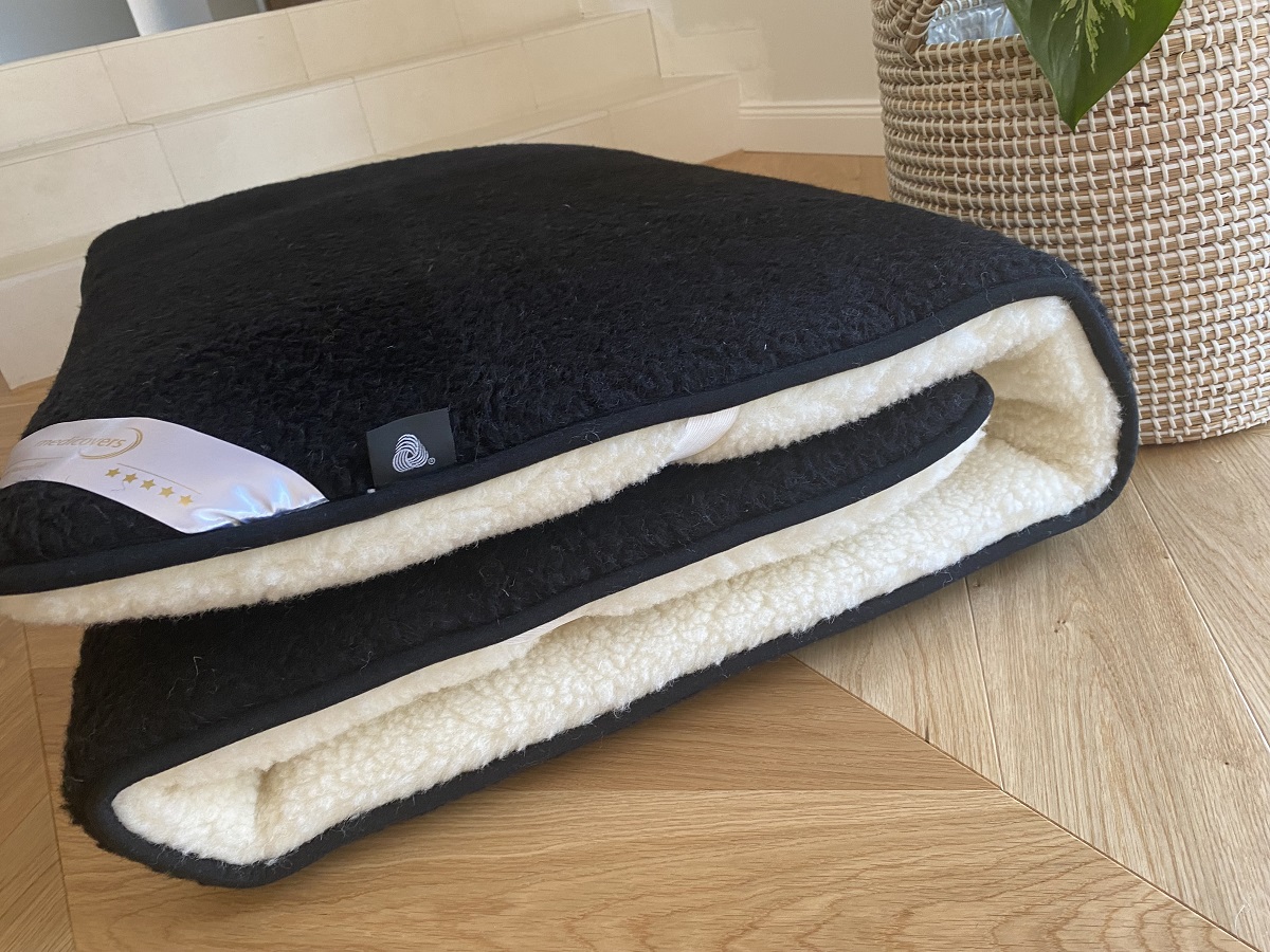 MATERAC WEŁNIANY MERYNOS TUMBLER CZARNY + TUMBLER 100x200