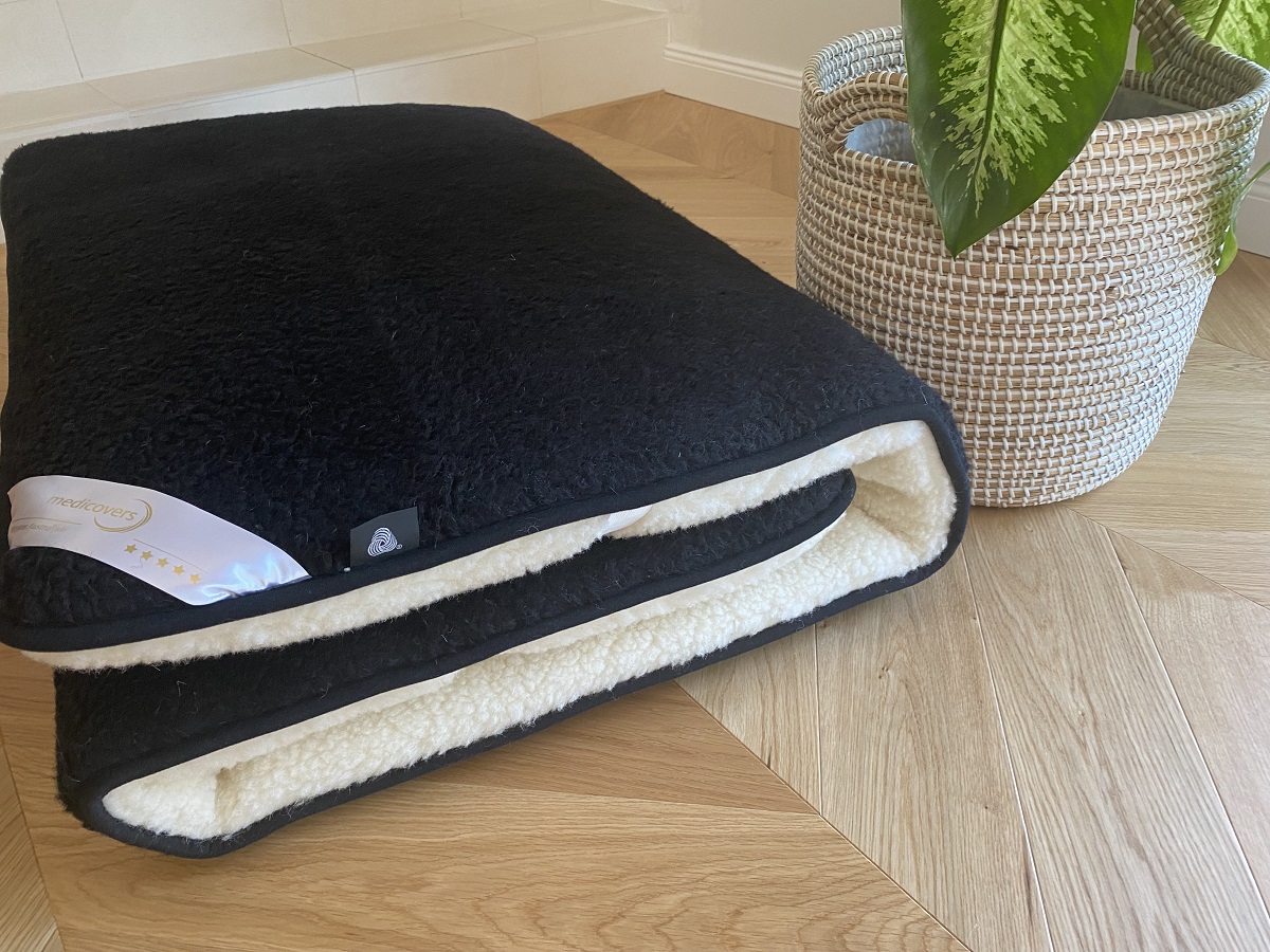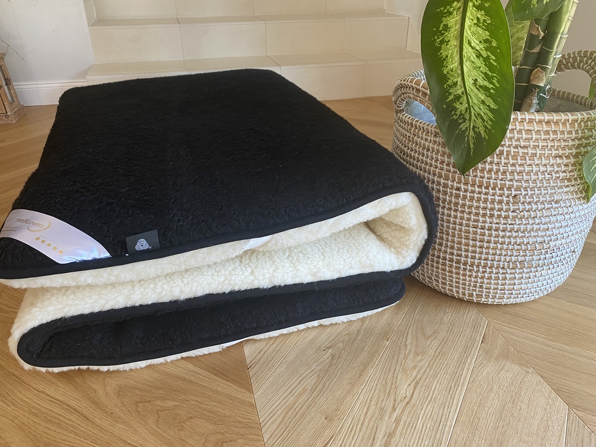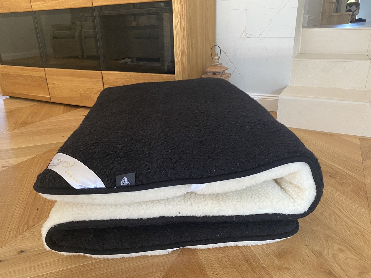 MATERAC WEŁNIANY MERYNOS TUMBLER CZARNY + TUMBLER 100x200